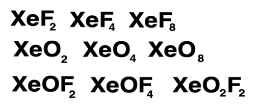 In fact, Xenon is the most chemically reactive of all the noble gasses. It can form fluorine compounds, which are stable enough to be studied in labs. There are also oxides of Xenon, which together with the fluorine compounds exhibit shared electron density in the form of actual orbitals rather than individual electrons. Compounds are;